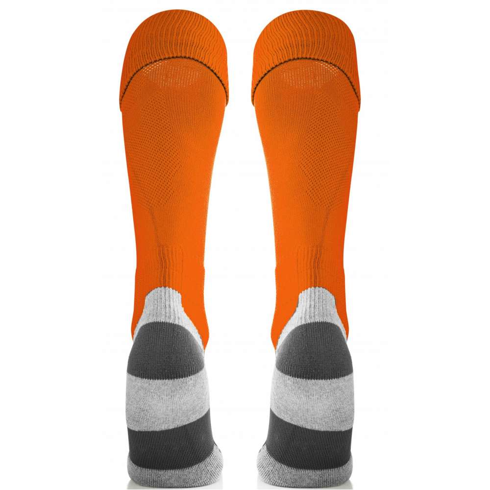 Calcetines de fútbol fabricados con un 70% de poliéster, 15% de algodón, 13% de poliamida y 2% de elastano. Tienen una zona de compresión en el empeine. Refuerzo para la absorción de impactos y efecto jacquard.